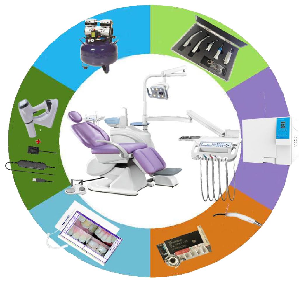 We provide a wide range of dental equipment including dental chairs, handpieces, curing lights, scaler machines, implant systems, imaging devices, oral scanners, cameras, X-ray machines, and related accessories from certified international brands.