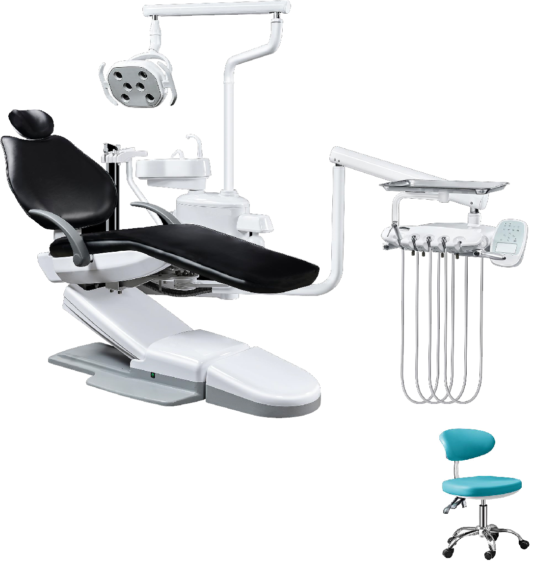 The D50 dental unit is engineered to deliver superior performance, comfort, and convenience in modern dental practices. It features a water heating system, spittoon with flushing and cup filling, and an instrument tray with air brake for organized workflow. The unit is equipped with an LED film viewer, LCD display control panel, and assistant control panel with buttons for precise operation. Its chair movement system offers 9 memory positions, complemented by a built-in tissue box and a yellow-and-white LED oral lamp with sensor to provide optimal visibility. Additional features such as a multifunctional foot pedal, pure water bottles, dentist stool with backrest, and imported inner tubing make the D50 a comprehensive solution for enhancing both patient comfort and dentist efficiency.